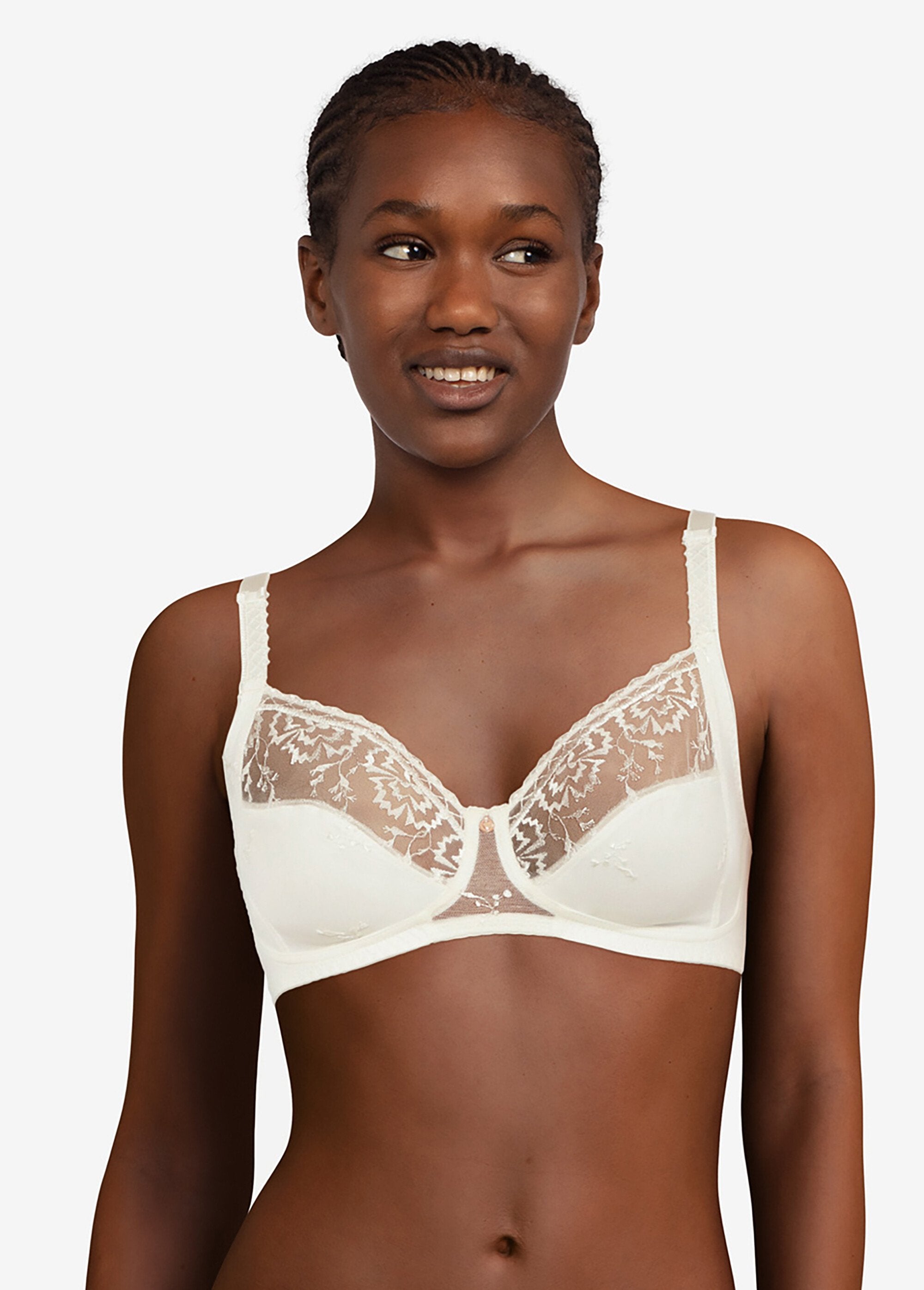 Designed to enhance all body shapes, the Every Curve wire-free bra from Chantelle® combines femininity and comfort for incomparable everyday well-being... A sublime blend of embroidery and transparency, ideally designed to hug the shapes. The cups are decorated with delicate floral embroidery and lined with opaque mesh, with a soft fantasy finish along the neckline. Decorated on the front, the elasticated straps are adjustable at the back. Chantelle® medal between the cups. Chimney back with double multi-position stapling. This product is certified OEKO-TEX® STANDARD 100 by OEKO-TEX® (N° CQ1105/2 IFTH)
