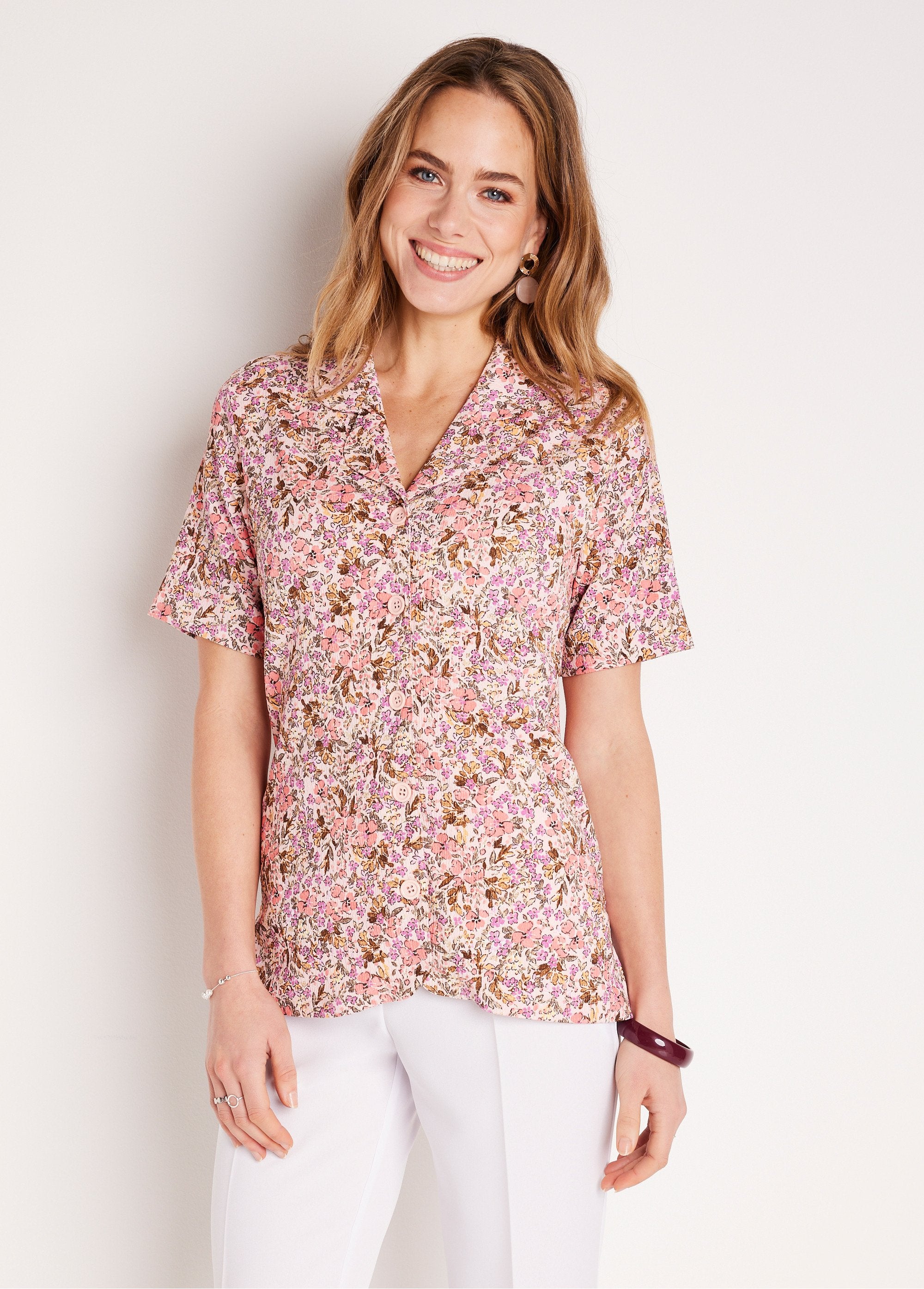 With its beautiful soft material, very pleasant to wear, its tailored collar and its charming print, the women's blouse asserts its style in all elegance. For a feminine look, you will combine it with a white skirt and heeled sandals. For a cooler look, opt for raspberry pants and white sneakers.
