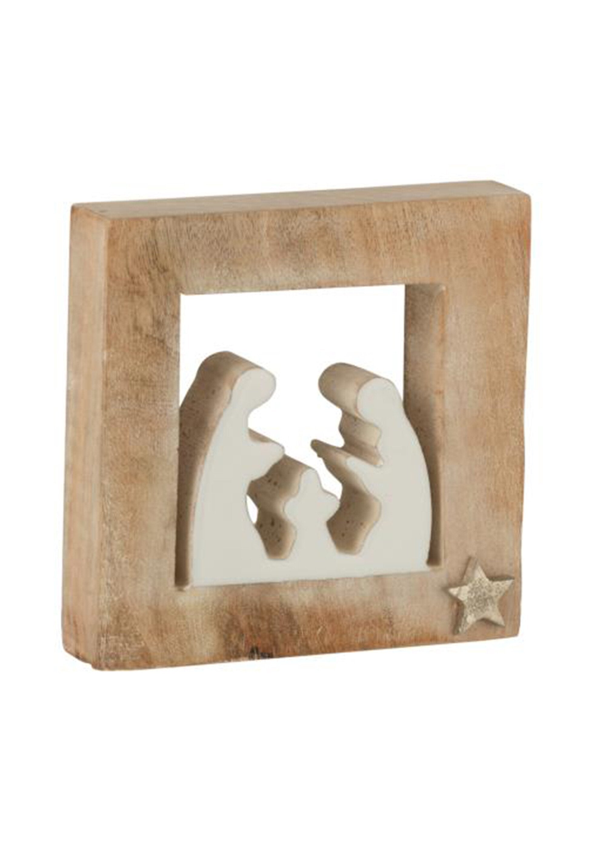 This Nativity frame will bring a touch of charm and tradition to your Christmas decor. Its hollowed-out frame design highlights the Nativity figures, creating a beautiful, luminous scene. Add a warm, spiritual atmosphere to your home with this wooden nativity scene.