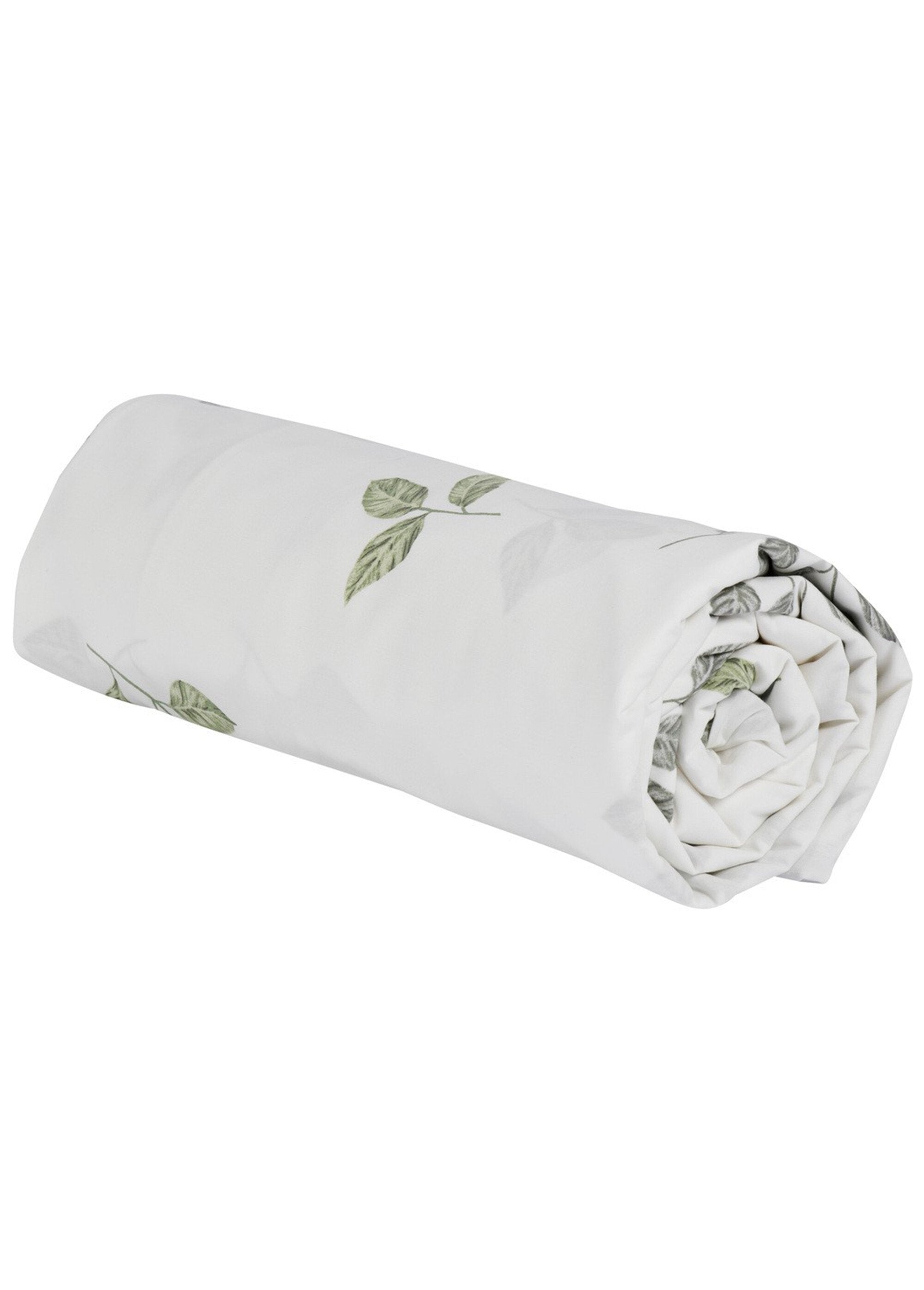 The Madinina bedding set draws its inspiration from the rich diversity of Martinique. It is decorated with the most beautiful floral motifs like the "Island of Flowers" which designates this land of the Antilles, otherwise called Madinina, thanks to the omnipresent luxuriant vegetation. The softness of cotton percale thanks to its ultra-tight weave of 80 threads/cm2 offers a unique sensation to the touch and an incomparable style in your bedroom. The Madinina collection is designed to create a calm and warm oasis where you can enjoy the eternal beauty of nature. Details of the fitted sheet: - 35 cm cap to fit many mattresses - Elastic at four corners for optimal support - printed with small green and gray foliage on a white background A change of scenery guaranteed with the entire Madinina bed linen collection : duvet cover, fitted sheet, flat sheet, pillowcase and bolster case.