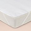 A flat-shaped mattress protector that combines freshness, flexibility, and complete waterproofing. Sleeping side: 100% cotton absorbent terry cloth. Mattress side: 78% cotton, 22% polyester terry cloth with a lightweight, flexible, and breathable polyurethane membrane that blocks liquids. Flat-shaped with elastic at all four corners. Made in Europe. This product is certified OEKO-TEX® STANDARD 100 by OEKO-TEX® (No. CQ 1229/1 IFTH). This label guarantees a healthy fabric composition, free from harmful substances or substances that may pose health risks. Certified and controlled manufacturing process.