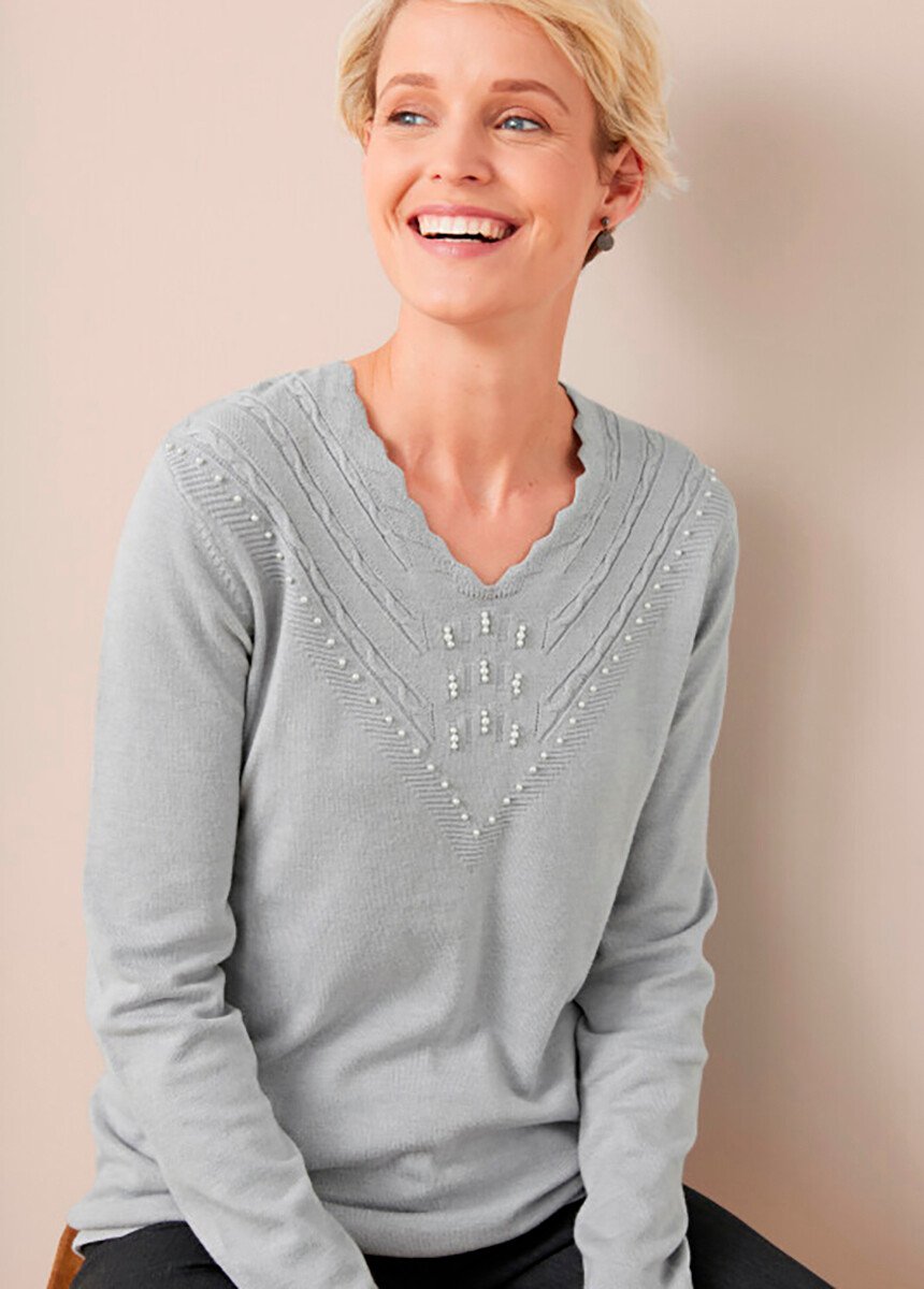 Embossed_knit_sweater_with_pearl_details_V-neck_Gray_FA1_slim