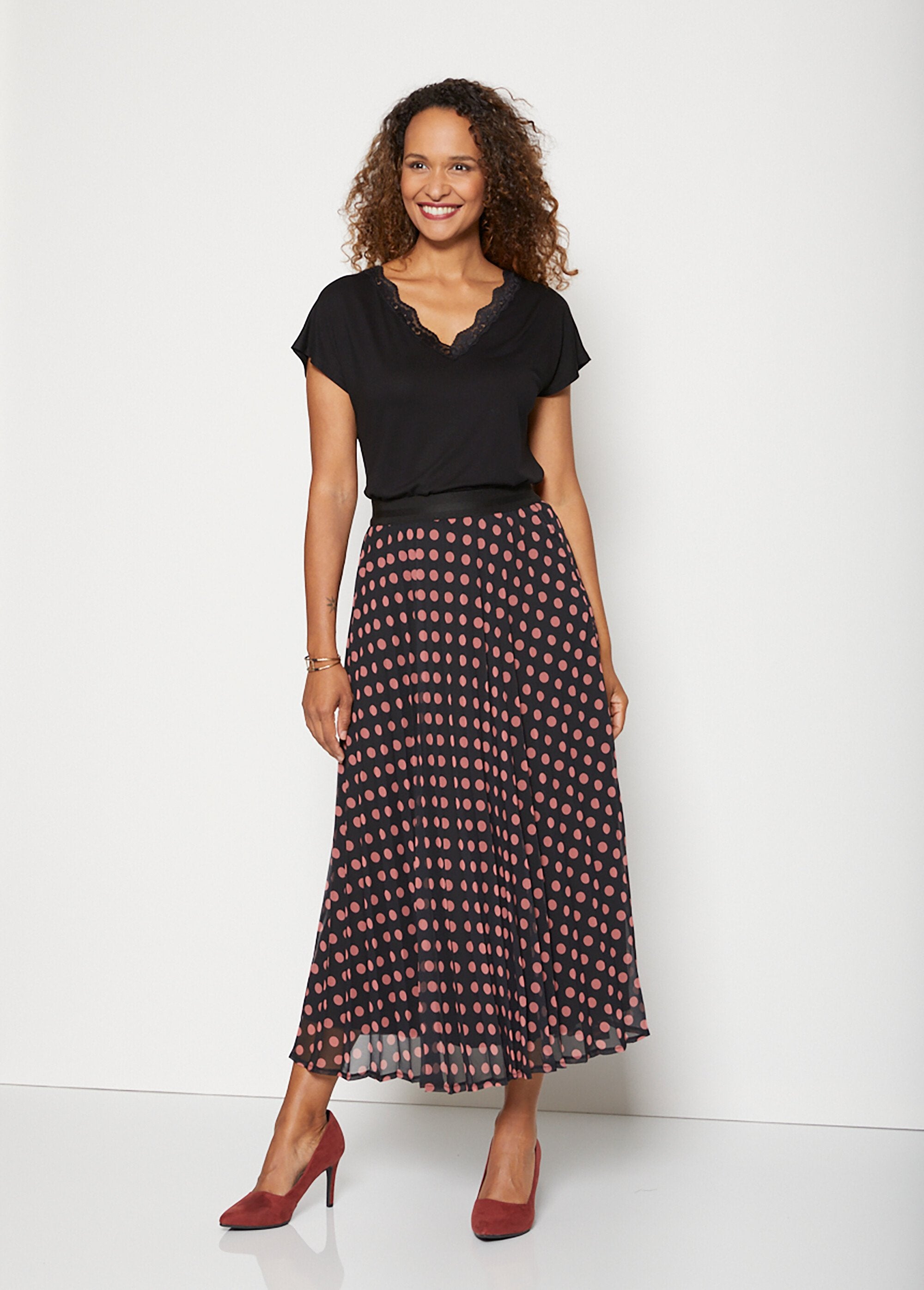 Available in plain and printed, the women's T-shirt adds a touch of fantasy to everyday outfits. To accentuate the feminine side of its lace, we pair it with a skirt. For more casual wear, we prefer jeans or pants.